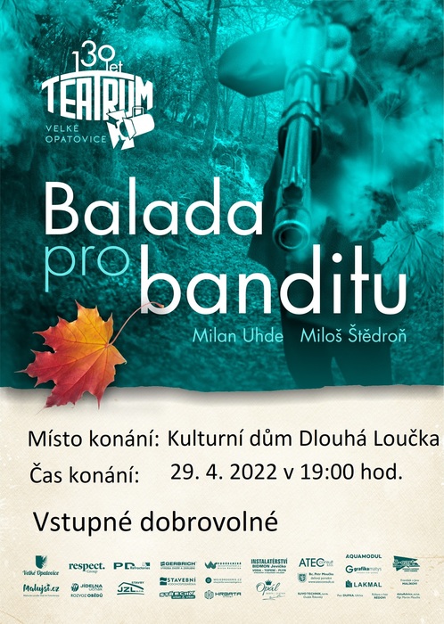 Obec Dlouhá Loučka Vás zve na divadelní představení Balada pro banditu, které se bude konat v Kulturním domě dne 29.4.2022 od 19:00 hod.