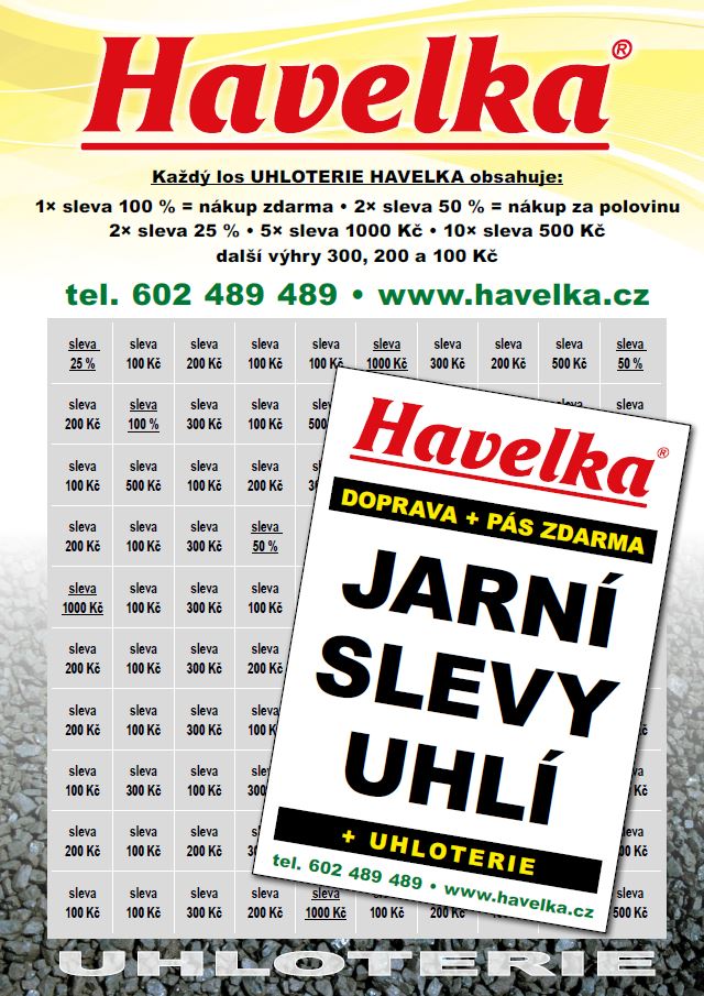 Ke každé dodávce uhlí nebo briket obdržíte los Havelka UHLOTERIE.