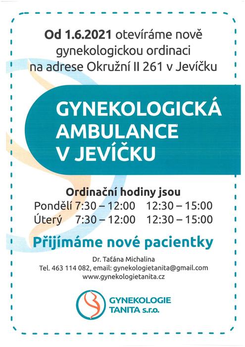 nově otevřena gynekologická ambulance (Dr. Taťána Michalina).