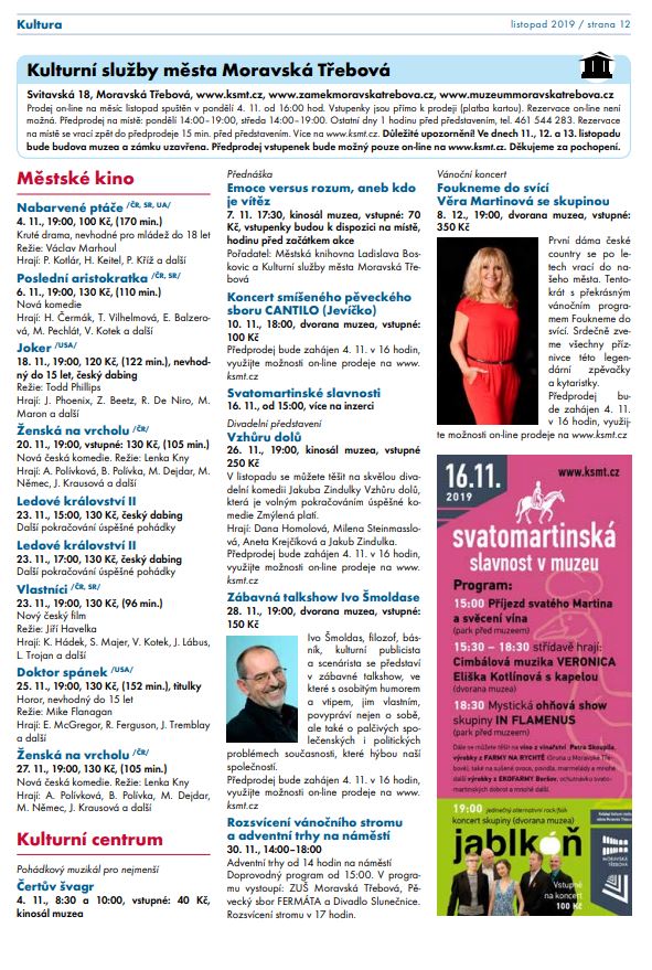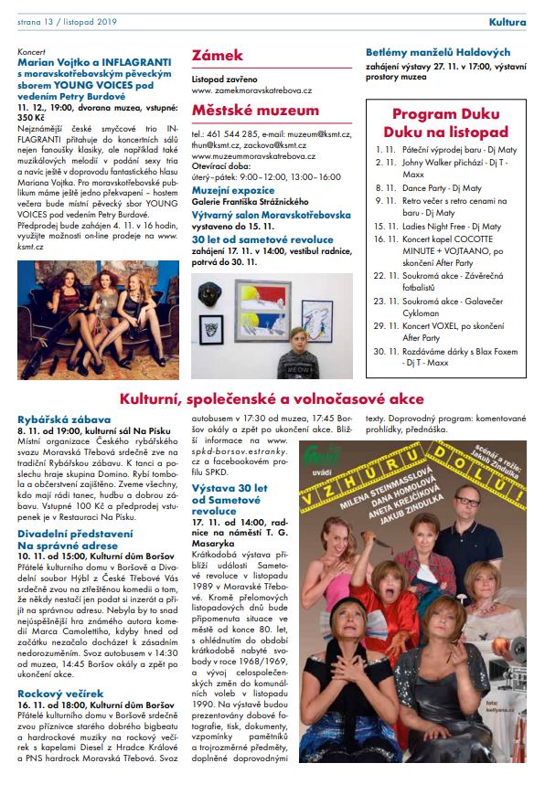 Kulturní akce konané v listopadu 2019 v Moravské Třebové.