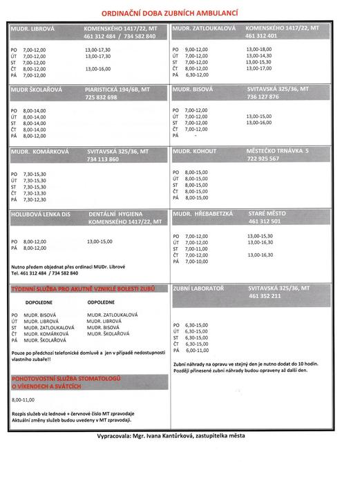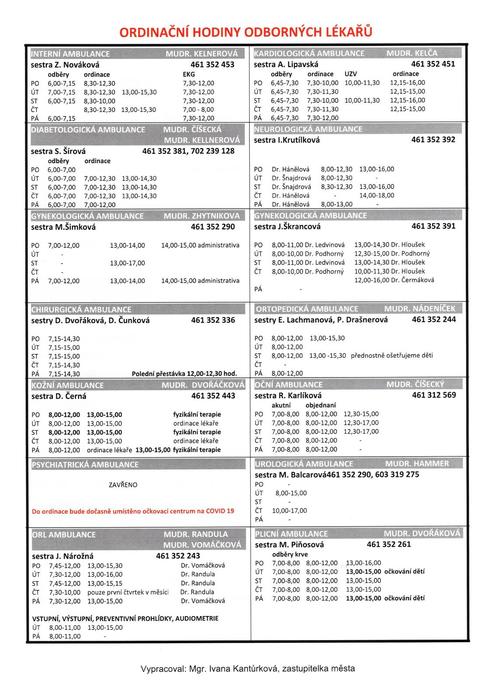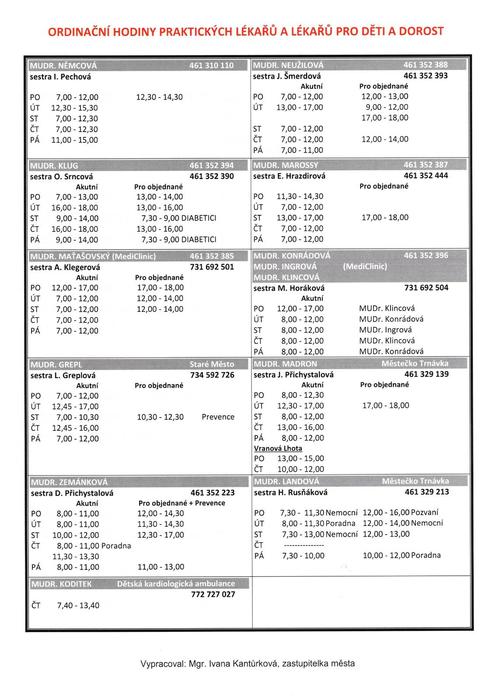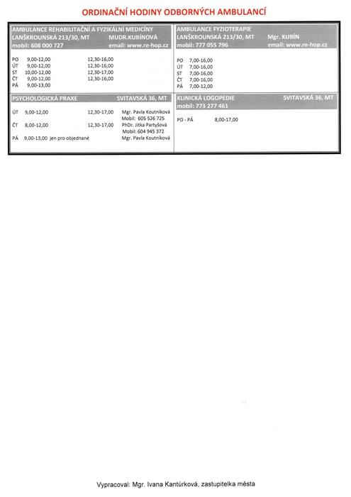 Úvod > Život v obci > Aktuality > Ordinační hodiny praktických lékařů, odborných lékařů, ordinační doba zubních ambulancí...