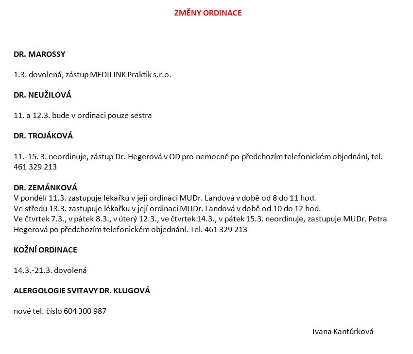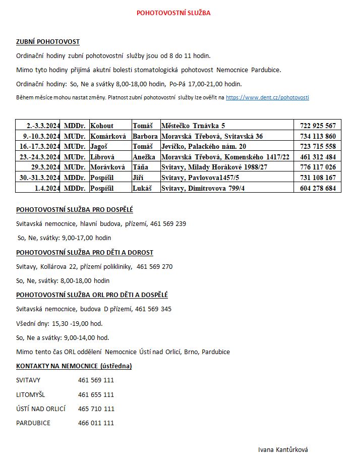 Úvod > Život v obci > Aktuality > Pohotovost, změny ordinační doby - březen 2024