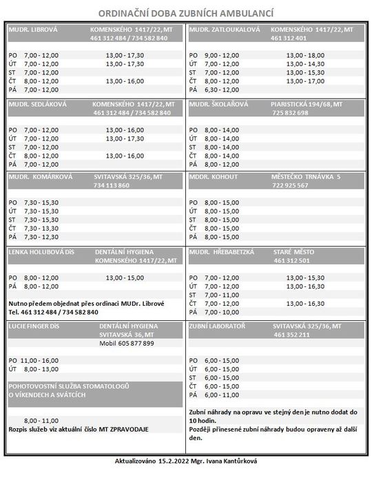 ordinační doba zubních ambulancí: