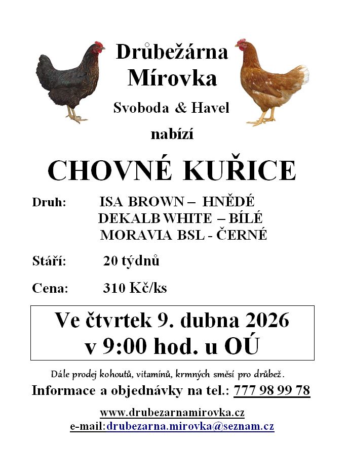 Úvod > Život v obci > Aktuality > Prodej drůbeže